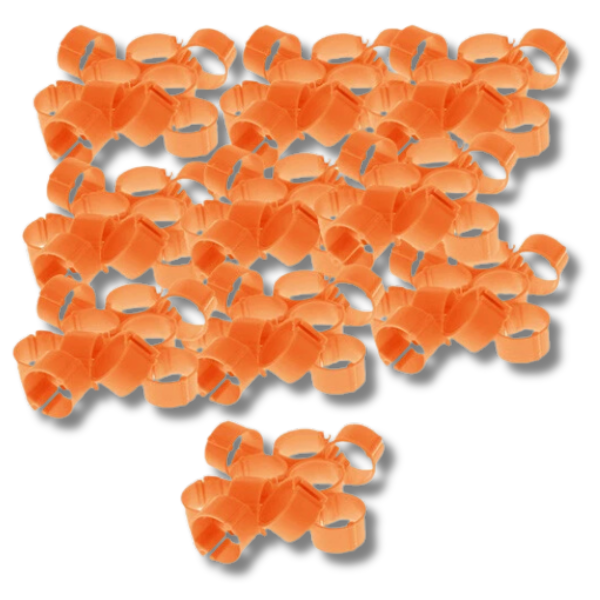 100x 13mm Orange Poultry Leg Bands for Chickens, Pigeons & Farm Birds