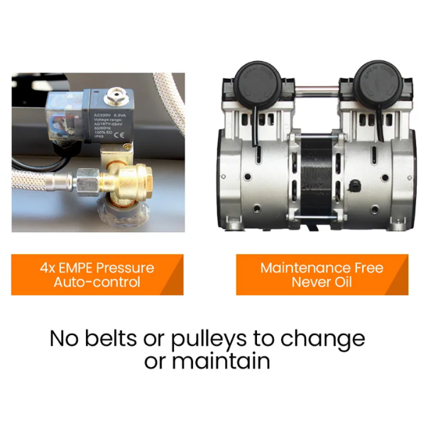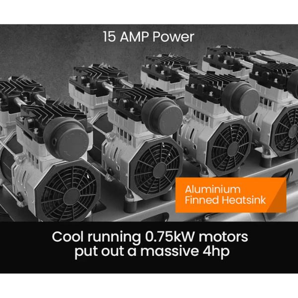 - 4.5HP power from 4 x 0.85kW oil-free motors