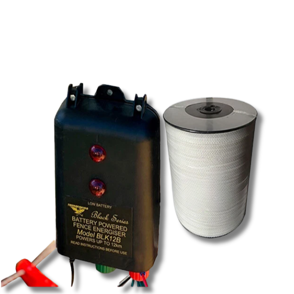 - 15km B120 Battery Electric Fence Energiser with 400m Hot Tape - Thunderbird