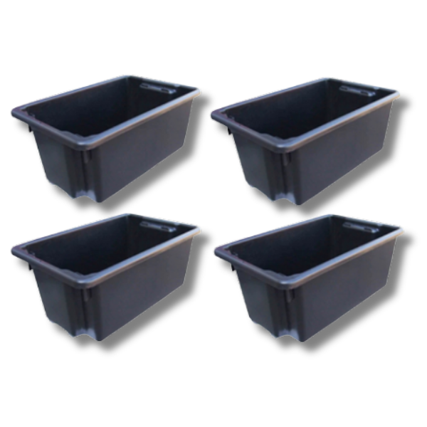 4x 52L Recycled Plastic Storage Tubs for Firewood, Parts, Packing & Shelving