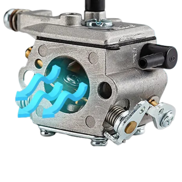 - 62cc petrol engine with direct air injection carburetor for maximum power
