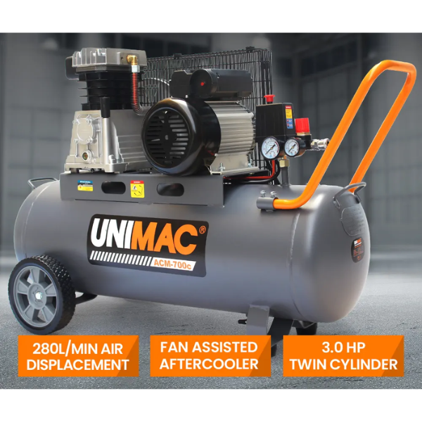Built for demanding applications, this Unimac commercial air compressor delivers powerful, consistent airflow with a durable certified tank and efficient brushless motor.