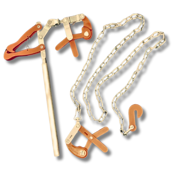 Reliable and easy-to-use chain wire strainer designed for applying and maintaining even tension on fencing wires. Features a spring grip for secure handling and efficient fence maintenance.