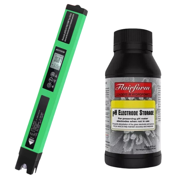 - 1x Digital meter with bluetooth with Flairform Electrode Cleaner 250ml and Flairform pH Electrode Storage 250ml