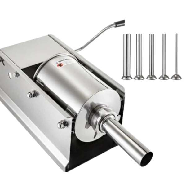 Make fresh sausages at home or in a commercial kitchen with this stainless steel sausage stuffer. Available in multiple capacities and designs, it offers durable construction, easy operation, and flexibility to suit different sausage-making needs.