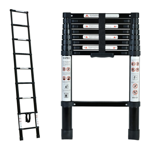 2.6m Foldable Telescopic Ladder + Carry Bag Black